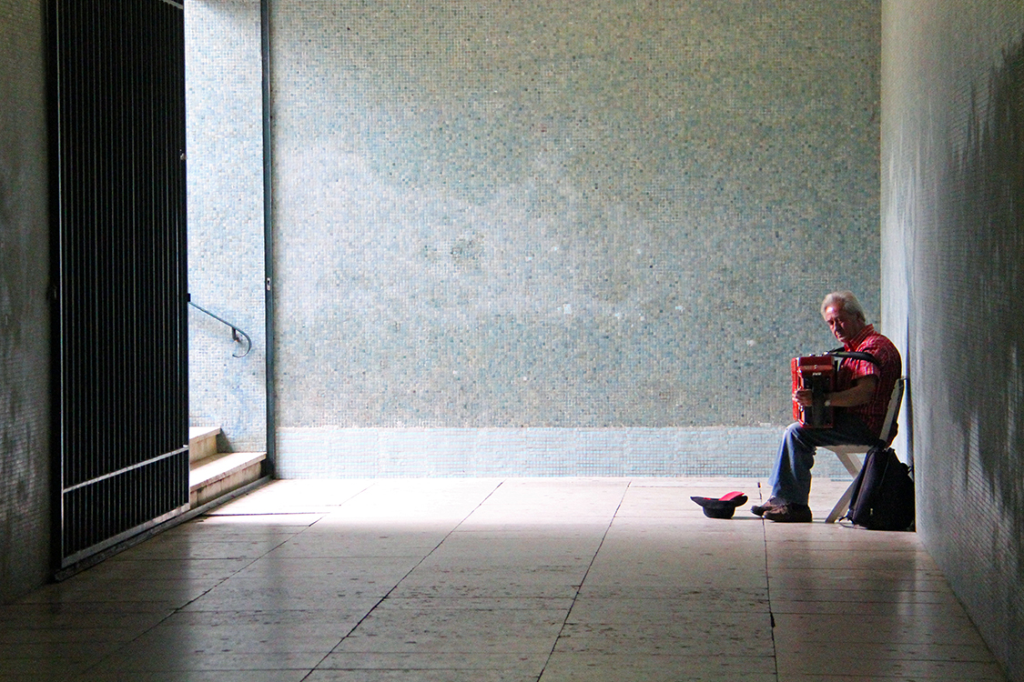 One day, passing in the tunnel under the main street, I came across this old man playing his accordion as the sound echoed throughout the passage like an opera house. Maybe he was down on is luck or perhaps this was a prime spot for practice, either way I realized how much this man just loved to play music no matter where he had to do it.